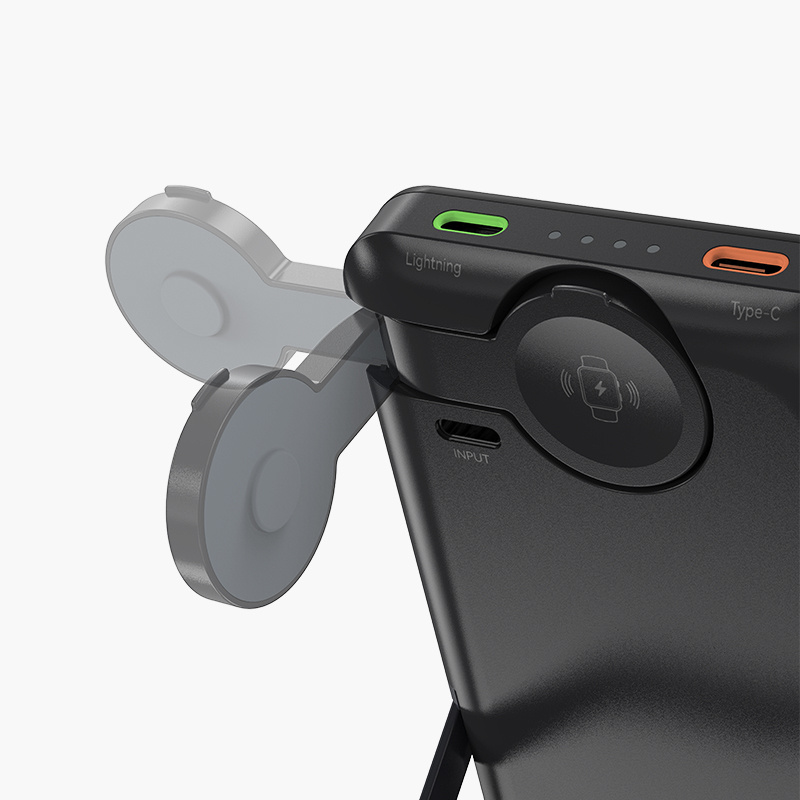 Универсальный внешний аккумулятор, что позволяет заряжать сразу ваш айфон и одновременно а Apple watch любой серии. Так же возможна зарядка и наушников от Эпл и сразу же часы.